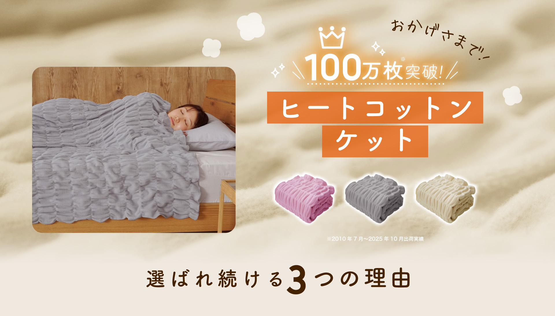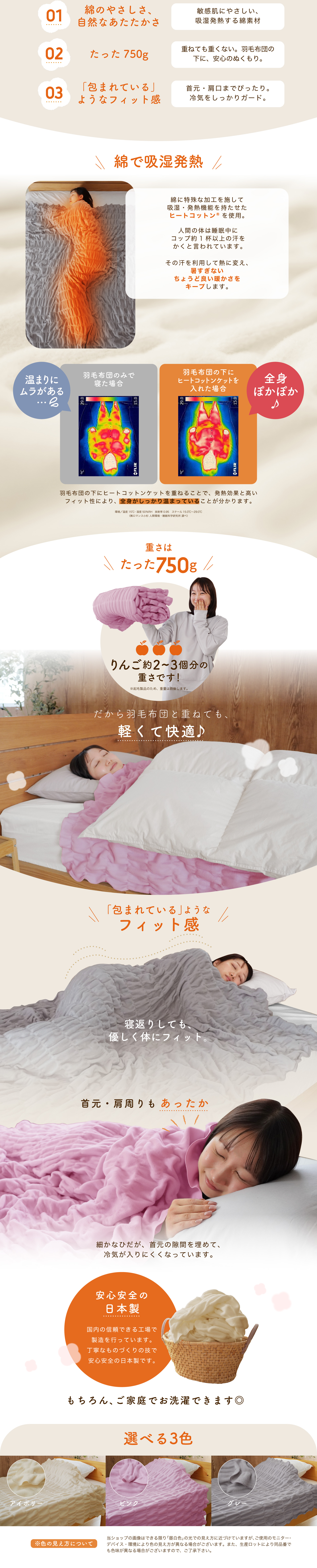 ヒートコットンケット|100万枚突破!綿で吸湿発熱【ロマンス小杉公式】3color